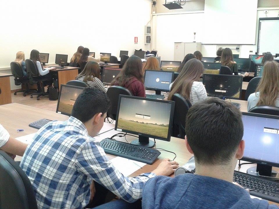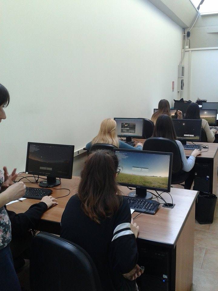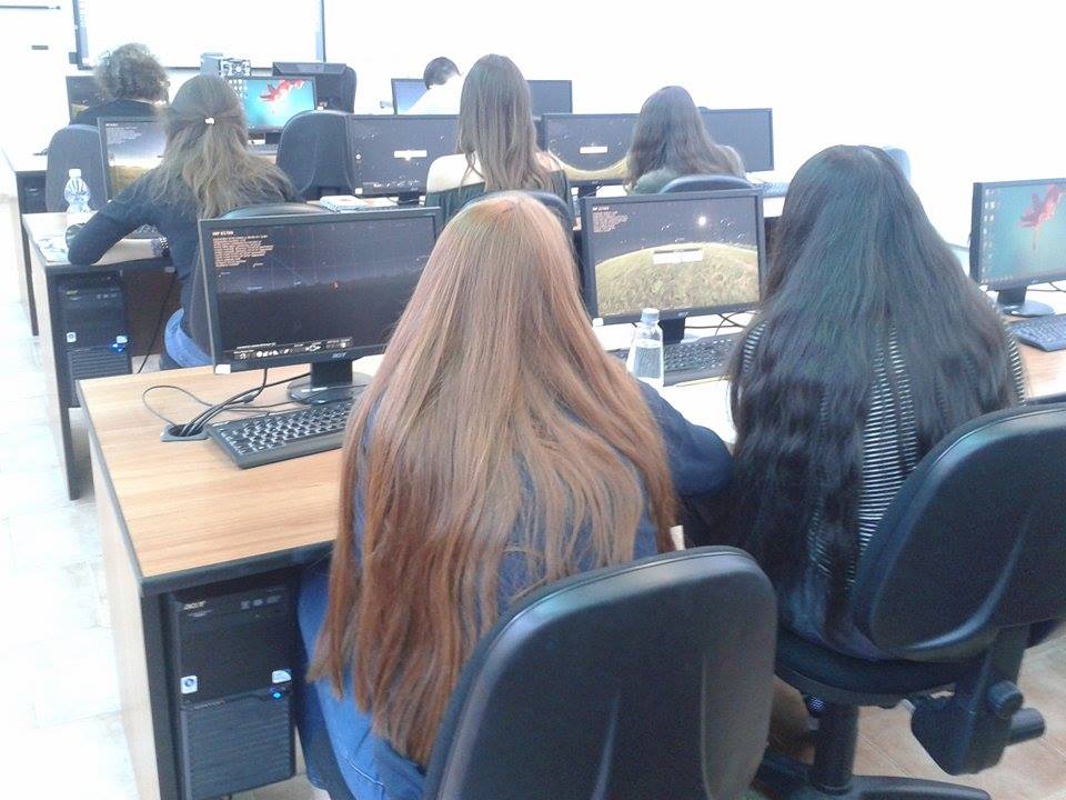 studenti e studentesse al lavoro durante l’incontro “Stellarium: un cielo virtuale”